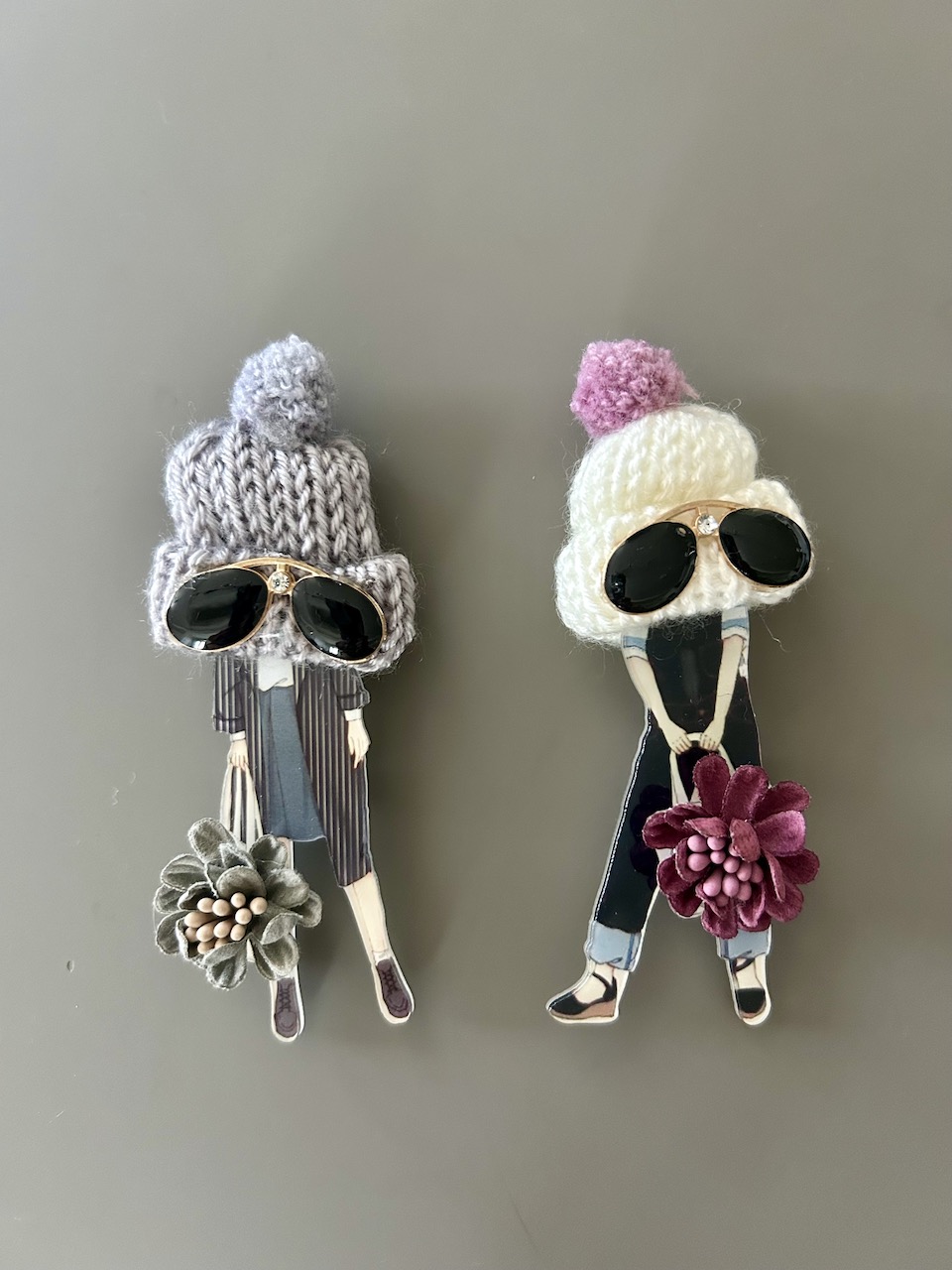 ブローチはニット帽やジャケット、バッグなどに、