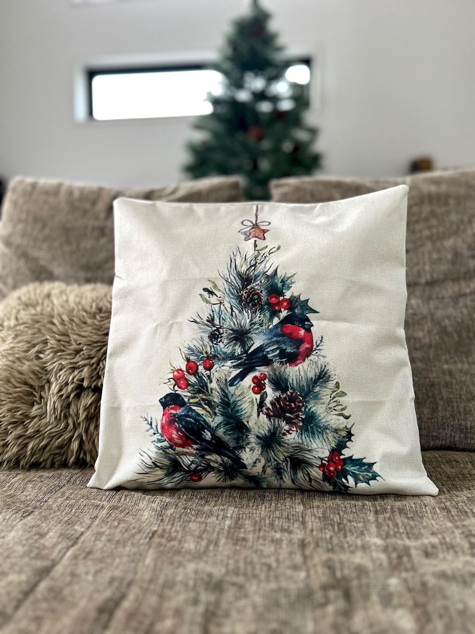 おしゃれなツリーデザインで、クリスマス気分をぐっとアップ。普段使いにも馴染む、あたたかみのあるクッションカバーです。